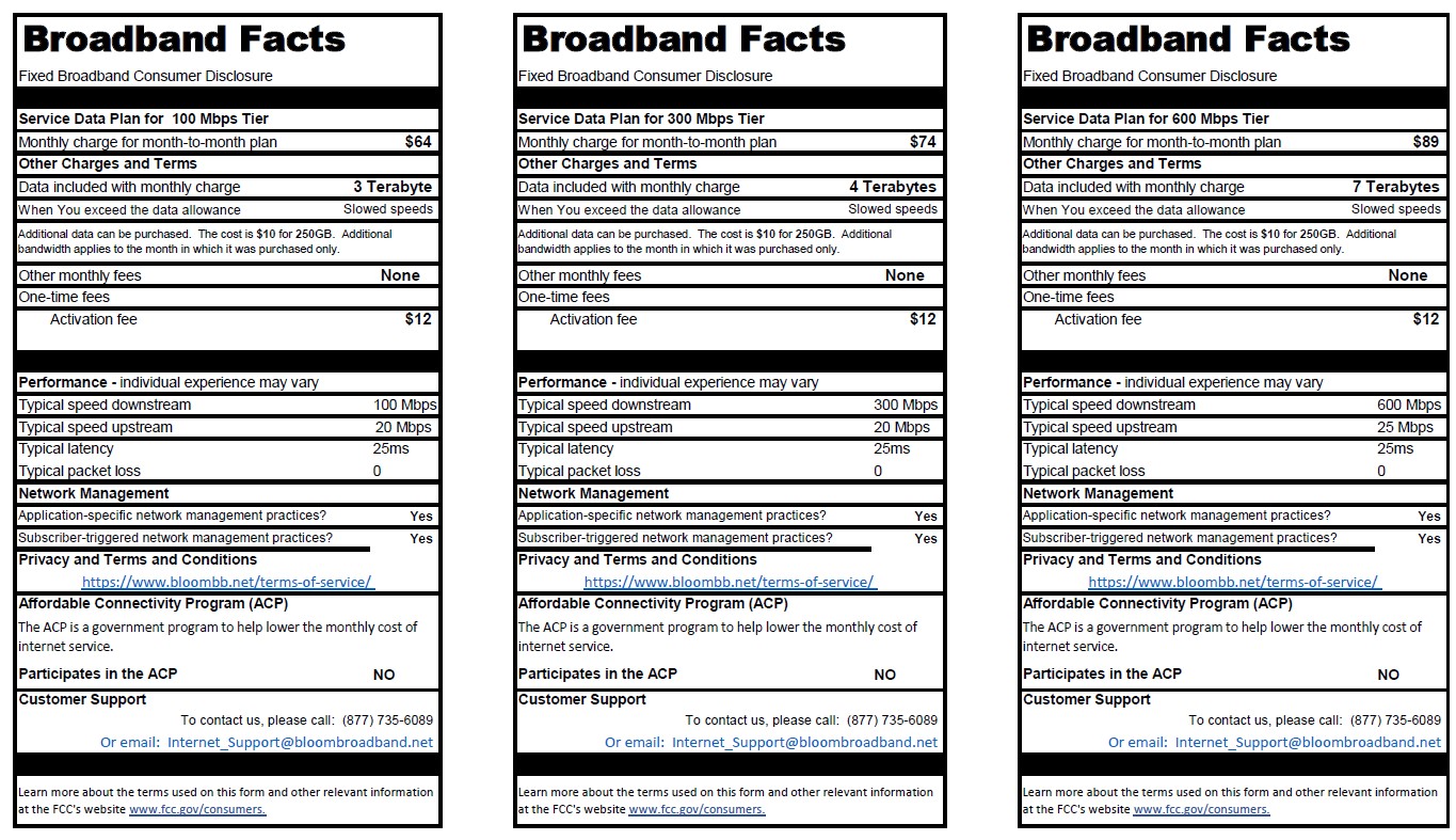 Select your apartment community for the Broadband Facts about each subscription tier.